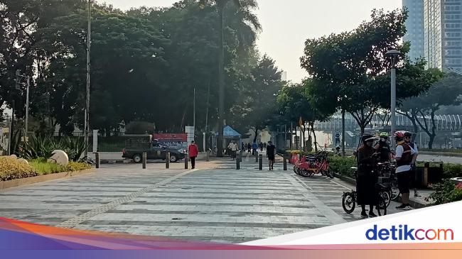 Pantauan detikcom pada Minggu (1/8/2021), tepatnya di depan fX Sudirman, Jalan Jenderal Sudirman, Jakarta Pusat, pukul 07.40 WIB, beberapa warga masih tampak berolahraga. Ada yang berolahraga joging dan ada yang bersepeda.