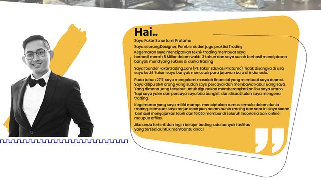 Melansir bio website tersebut, fakartrading.com adalah "sarana yang memfasilitasi kamu seputar dunia trading seperti Buku, Robot, Video, Kelas dan Seminar yang mampu memberikan kamu ilmu dan benefit yang sangat besar tentunya."