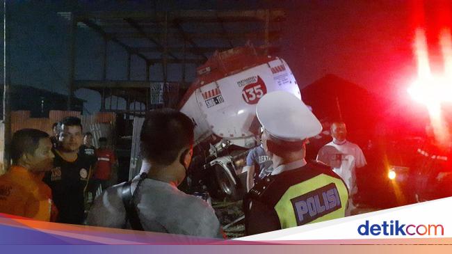 (afn/aku)Truk Pertamina Nyungsep di Tanah Putih Semarang Sempat Hantam Pemotor - detikcom