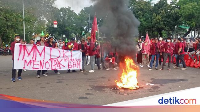 Sempat Bakar Ban, Massa Demo Tolak BBM Naik di Patung Kuda Bubar - detikNews