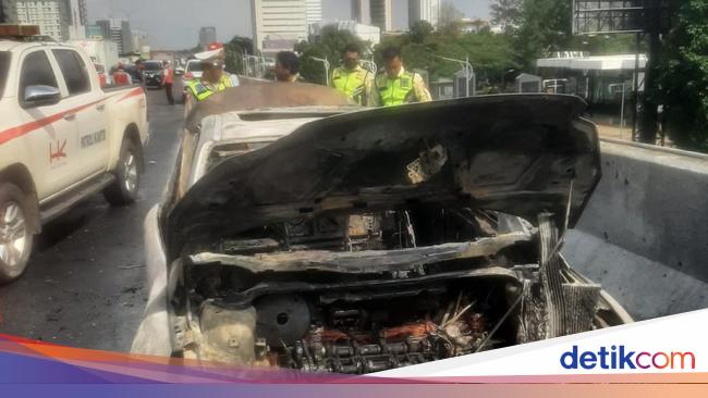 "Setiba di Km 22.800 B (layang Fatmawati), pengemudi mencium bau bensin di dalam mobil. Kemudian, pengemudi menepikan kendaraan di bahu jalan, selanjutnya turun dari kendaraan dan melihat ada api membesar di ban sebelah kiri depan," katanya.